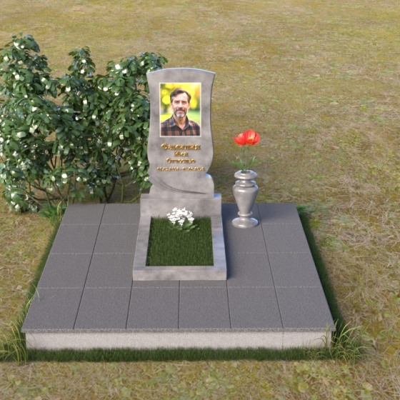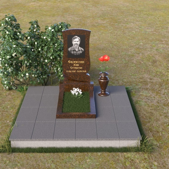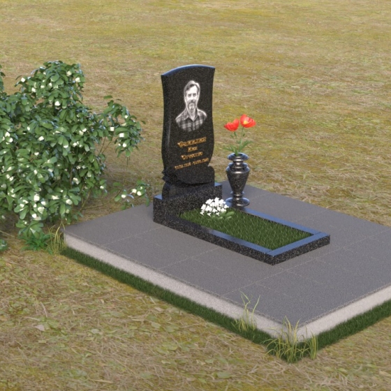 Геометрия модели продумана до мелочей. От основания, выполненного в виде прямоугольной плиты, переходящей в надгробную плиту с зеркальной полировкой, до изящного изгиба верхней части стелы – каждый элемент работает на создание гармоничного и запоминающегося образа. Плавные линии смягчают строгость камня, а контраст полированных и матовых поверхностей придает глубину и объем. Маленькая ваза, выполненная из того же гранита, что и остальная композиция, довершает образ, позволяя разместить живые цветы в память об ушедшем.